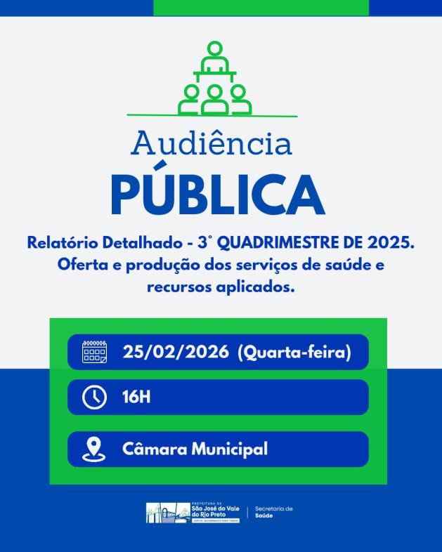 A Secretaria de Saúde apresenta o Relatório Detalhado do 3º Quadrimestre de 2025, com a prestação de contas da oferta, produção dos serviços e aplicação dos recursos públicos.